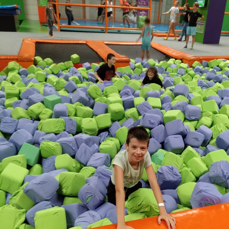 Po intensywnej zabawie przyszedł czas na odpoczynek i wspólne zdjęcia – tak, żeby każdy miał pamiątkę z tego wyjątkowego dnia. W drodze powrotnej w autobusie słychać było tylko rozmowy o tym, kto zrobił najlepsze salto i kiedy wrócimy tam znowu.
