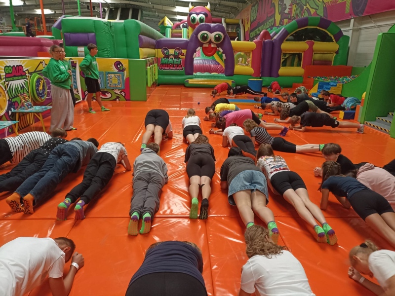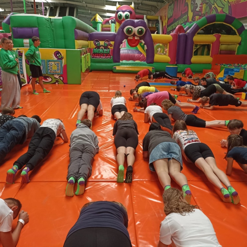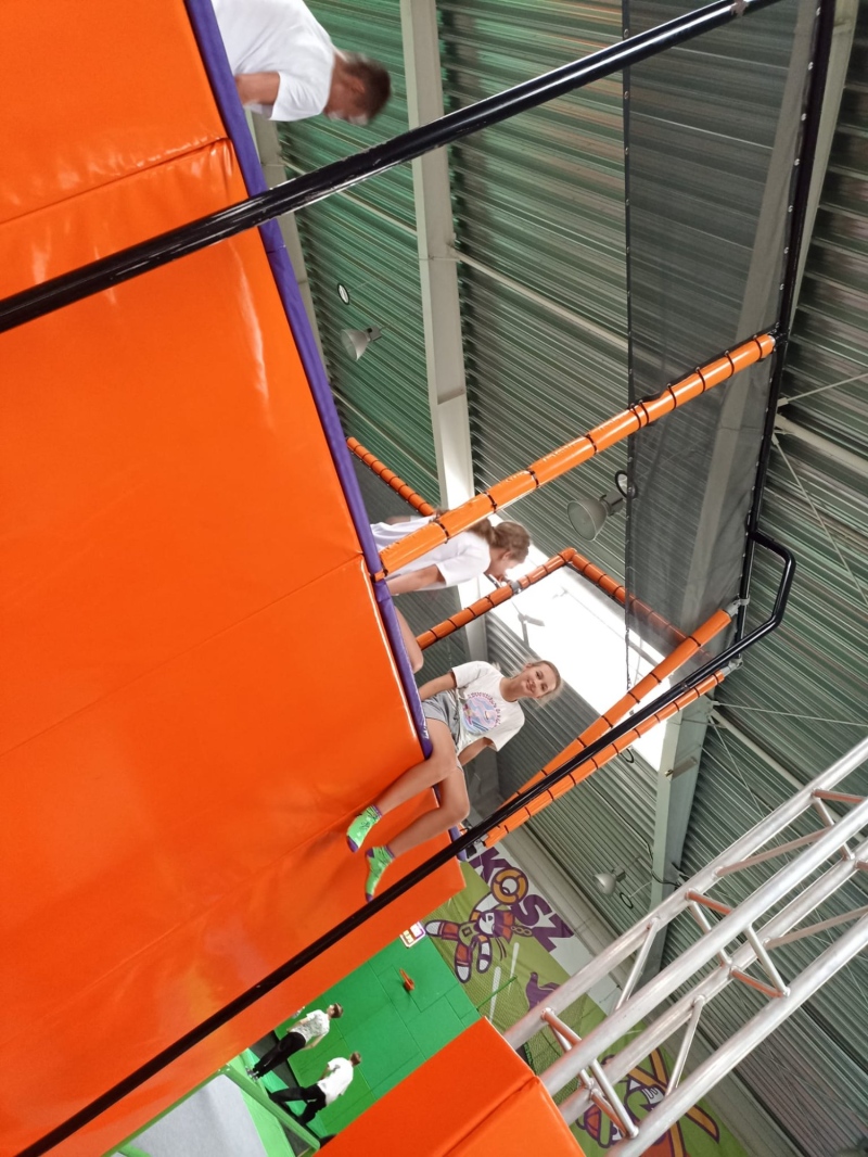 Każdy znalazł coś dla siebie:jedni ćwiczyli salta i przewroty, inni testowali siły na ścianach wspinaczkowych i trampolinach sportowych, nie zabrakło też zabaw zespołowych, takich jak dodgeball na trampolinach, gdzie rywalizacja dostarczyła mnóstwo śmiechu.