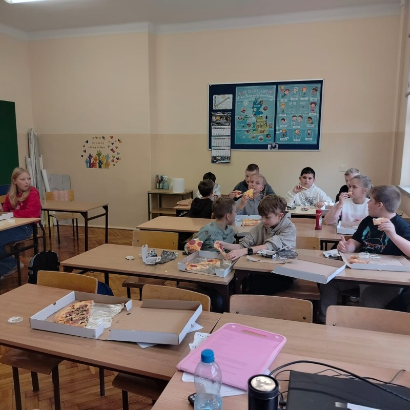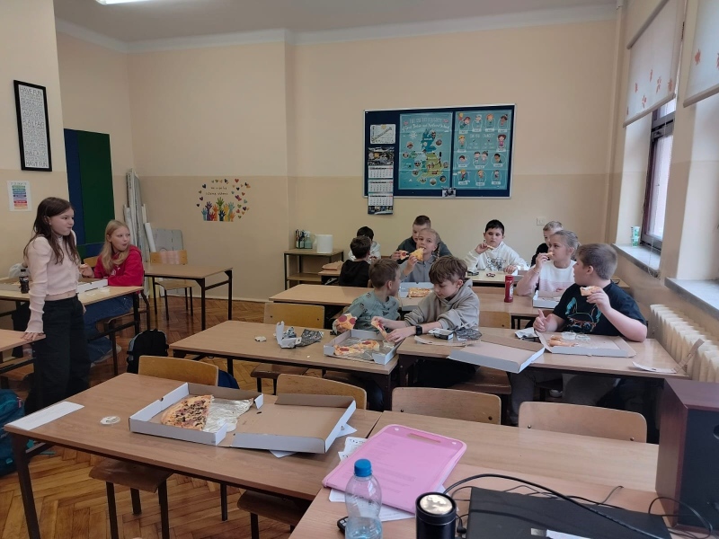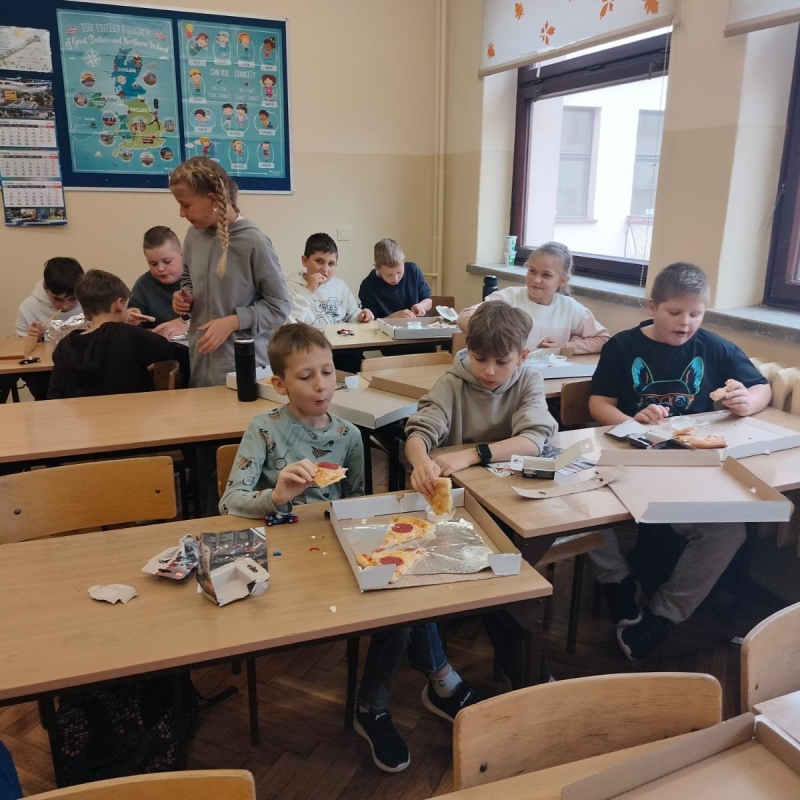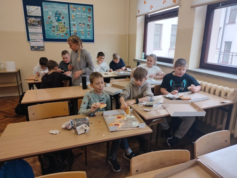 W tym szczególnym dniu uczniowie świętowali na różne sposoby. Jedni wręczali sobie prezenty, inny zajadali pizzą:)