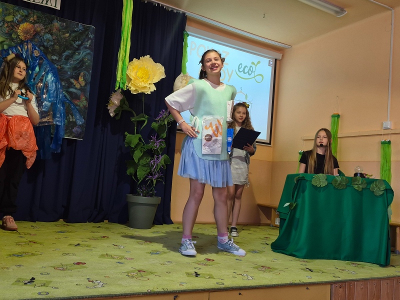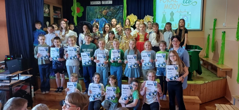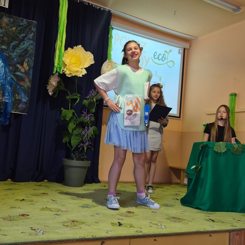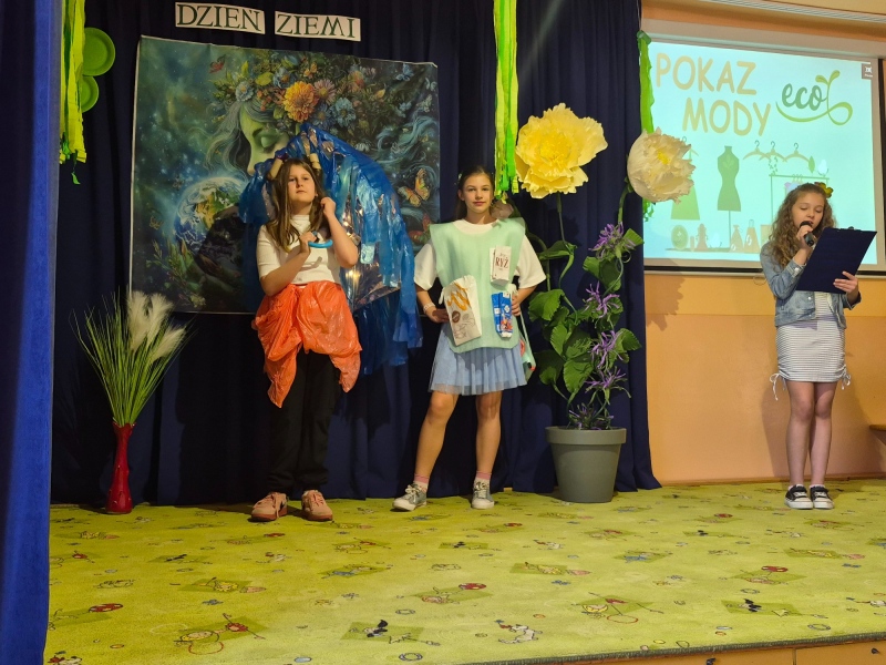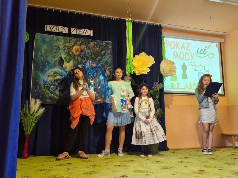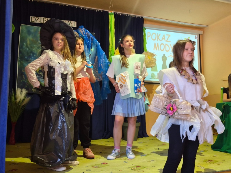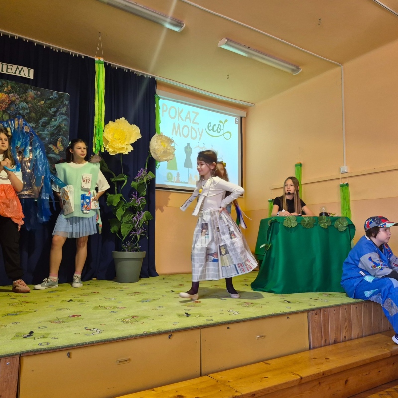 Na zakończenie odbył się pokaz mody ekologicznej. Uczniowie zaprezentowali stroje wykonane z materiałów przeznaczonych do recyklingu, takich jak papier, plastik czy folia. Kreatywność uczestników była imponująca, a publiczność nagrodziła ich gromkimi brawami.