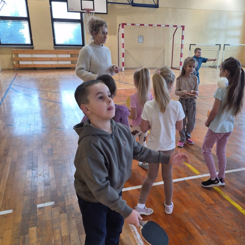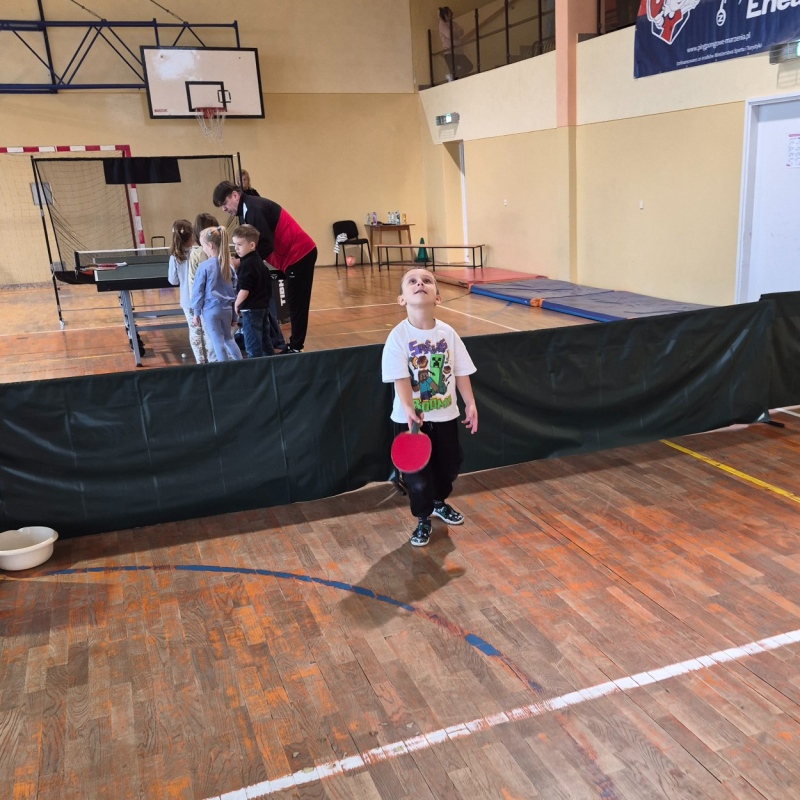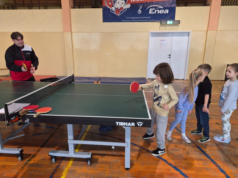 2 grudnia w naszej szkole odbyła się pokazowa lekcja tenisa stołowego, przygotowana przez wiceprezes LKS Iwony Bernaś oraz trenerów Marcina i Anię. Na wydarzenie zaproszono dzieci z zerówki z Samorządowego Przedszkola „Leśne Zacisze” w Piotrowicach.