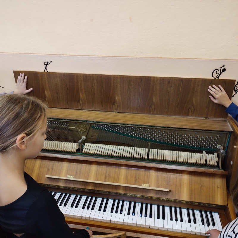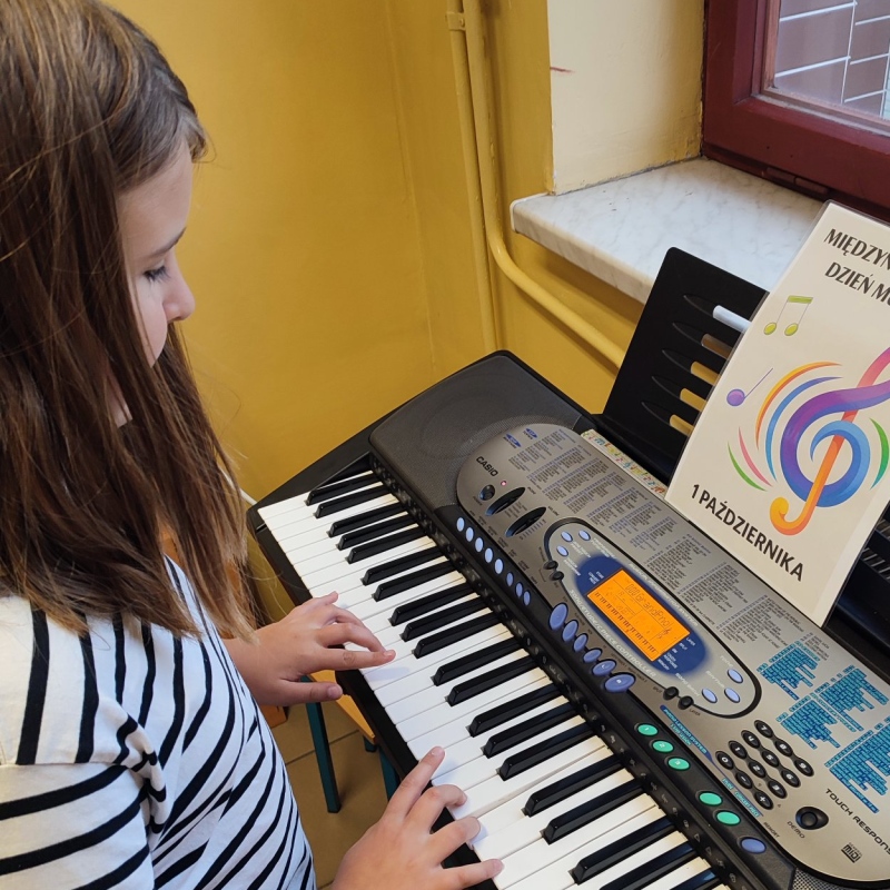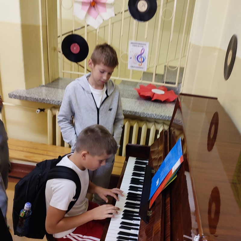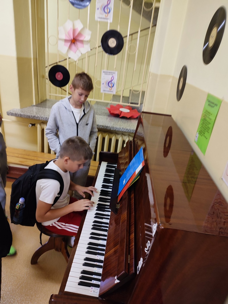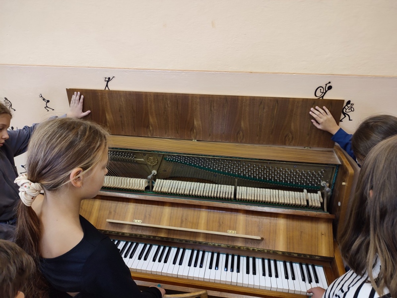 Tego dnia uczniowie mieli okazję nie tylko słuchać, ale przede wszystkim aktywnie uczestniczyć w świecie dźwięków. Grali na pianinie, keyboardzie oraz poznawali instrumenty strunowe, takie jak: ukulele,banjo, skrzypce, gitara, a także… pianino od wewnątrz! Dzięki temu mogli zrozumieć, jak działa ten instrument i co sprawia, że wydaje tak piękne dźwięki.