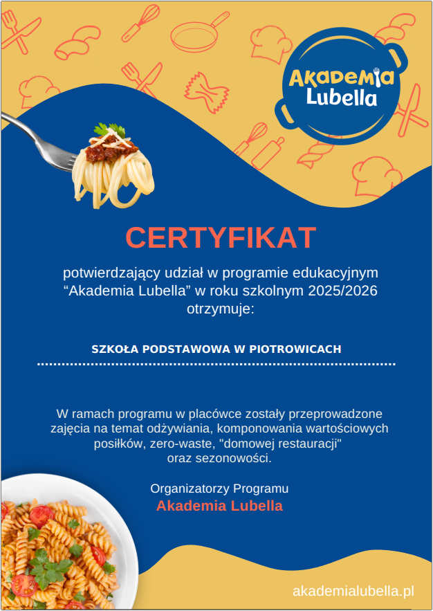 Szkoła otrzymała zaświadczenie potwierdzający udział w programie edukacyjnym “Akademia Lubella” w roku szkolnym 2025/2026.