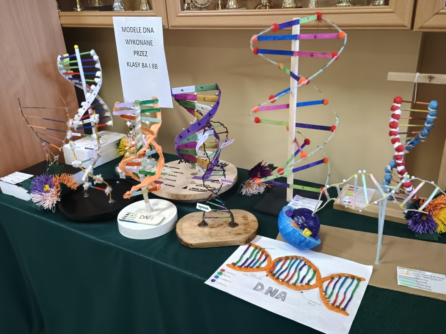 Do pracy uczniowie wykorzystali różnorodne materiały – kolorowe koraliki, druciki, plastelinę, słomki czy patyczki. Efekty ich pracy przerosły oczekiwania! Modele wiernie odwzorowują strukturę podwójnej helisy, pokazując jak złożony, a jednocześnie uporządkowany jest kod genetyczny każdego z nas.