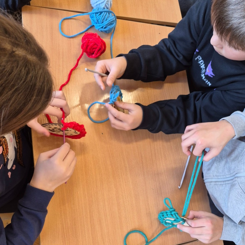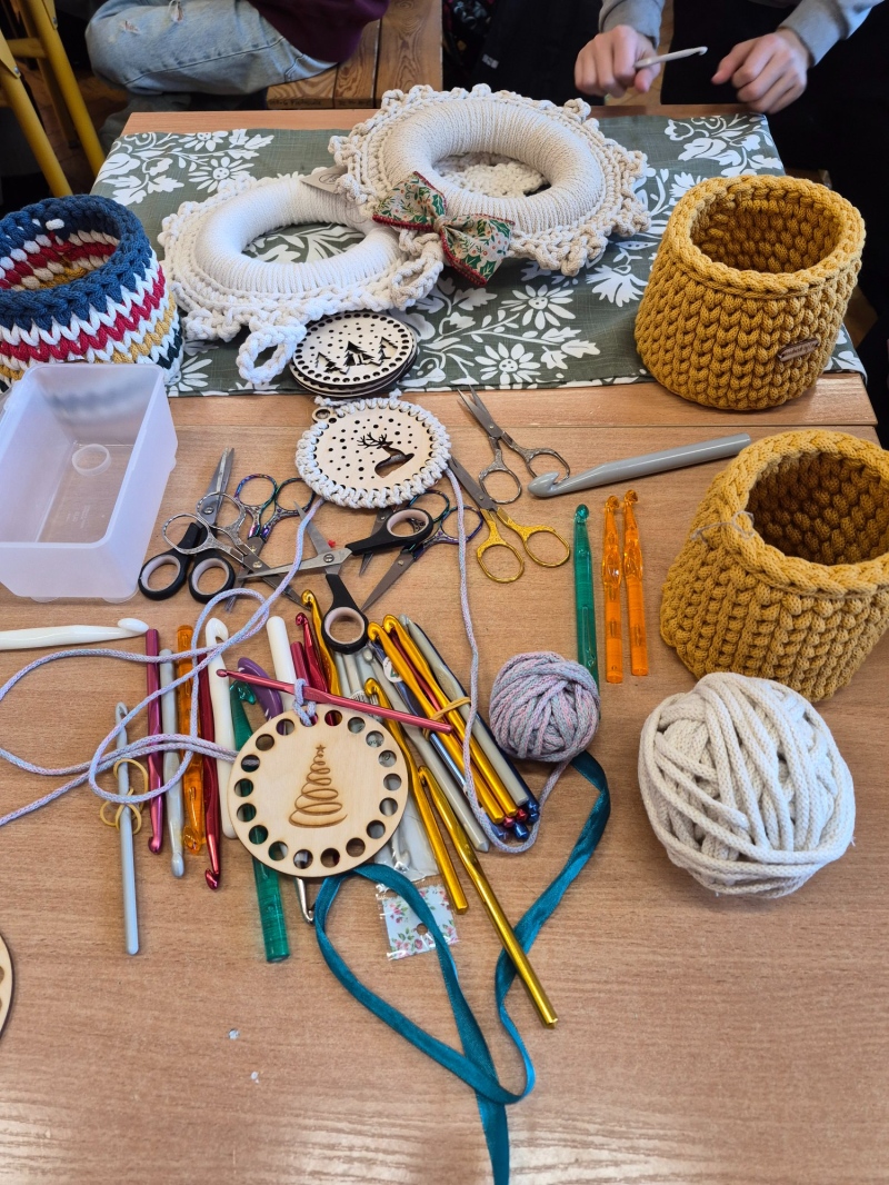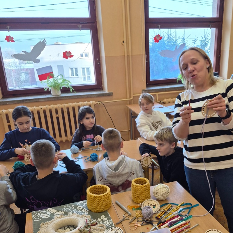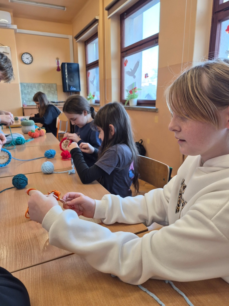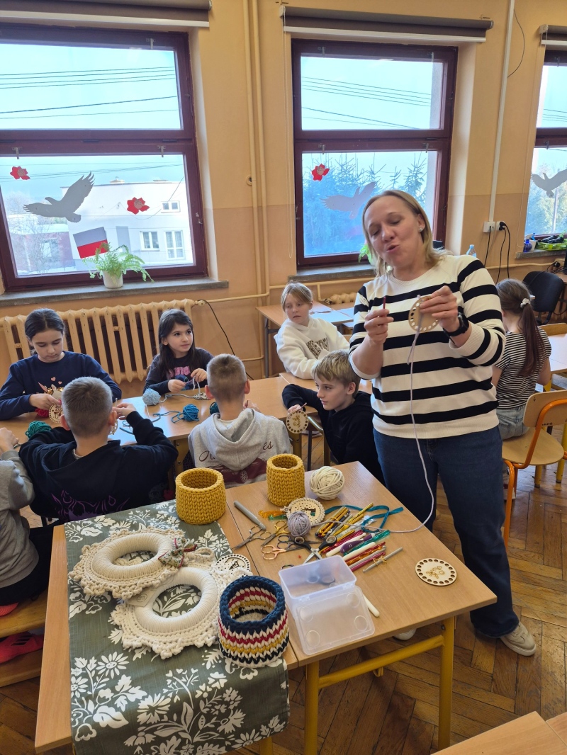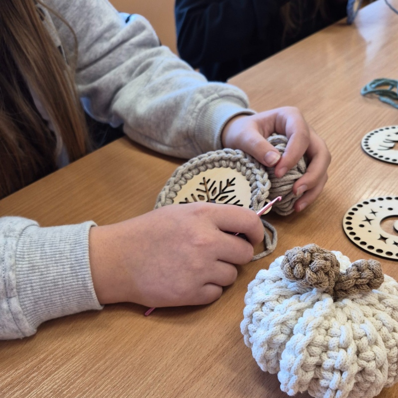 W naszej szkole odbyły się wyjątkowe warsztaty rękodzielnicze, podczas których uczniowie mieli okazję własnoręcznie wykonać podkładki pod kawę lub herbatę ze sznurka oraz świąteczne bombki wykorzystując podstawy szydełkowania. Celem zajęć było rozwijanie kreatywności, cierpliwości oraz sprawności manualnej, a także pokazanie dzieciom, że tworzenie przedmiotów codziennego użytku może być świetną zabawą.