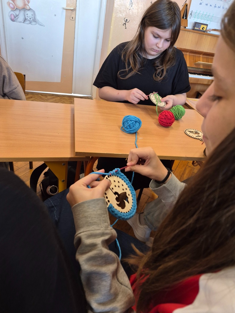 Podczas warsztatów panowała radosna i twórcza atmosfera. Było zabawnie, pracowicie, ale przede wszystkim bardzo kreatywnie – uczniowie z dużym zaangażowaniem uczyli się nowych splotów, dobierali kolory sznurków i z uśmiechem na twarzach tworzyli swoje małe dzieła sztuki. Każdy uczestnik mógł poczuć satysfakcję z samodzielnie wykonanej pracy.