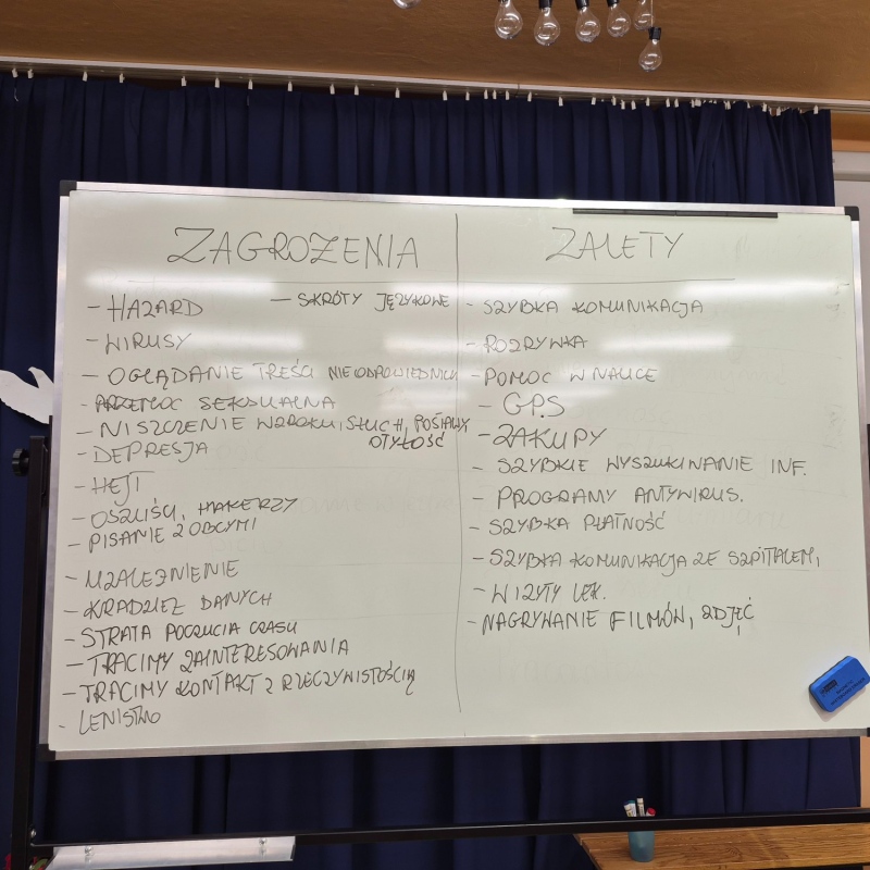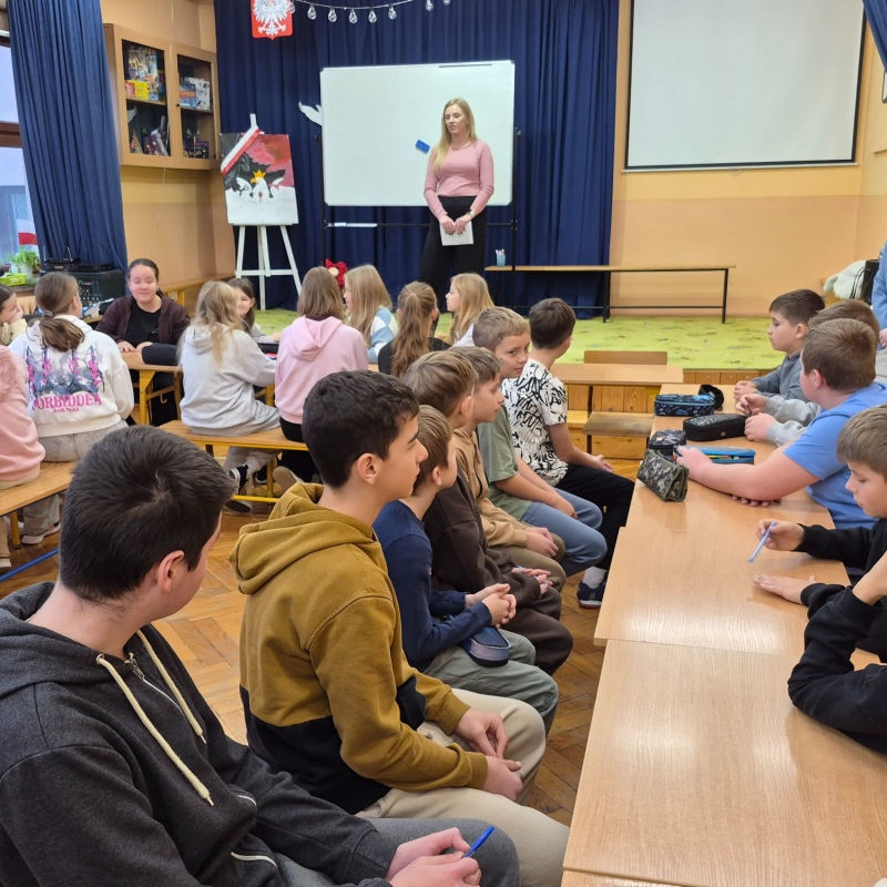 W dniu 17.11.2025 r. odbyły się w naszej szkole warsztaty na temat „Uzależnienie od Internetu, telefonu komórkowego, gier komputerowych i portali społecznościowych”, z podziałem na grupy wiekowe: klasy 5-6 i klasy 7-8, które poprowadziła pani psycholog z Polskiego Centrum Profilaktyki z Krakowa.