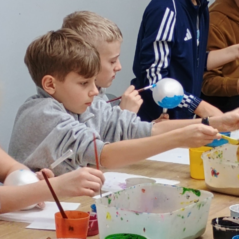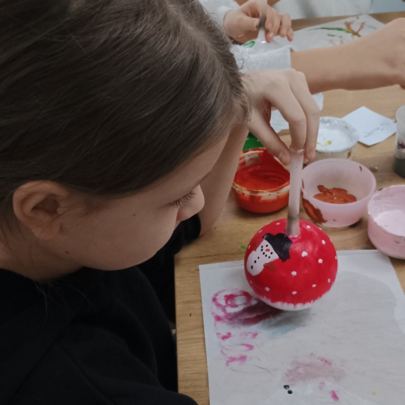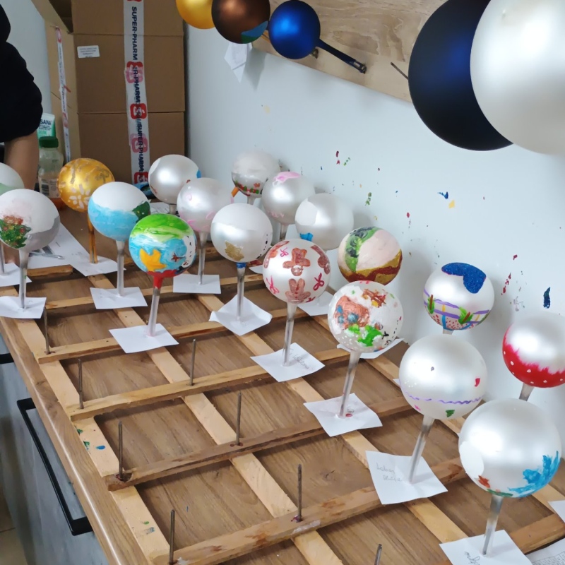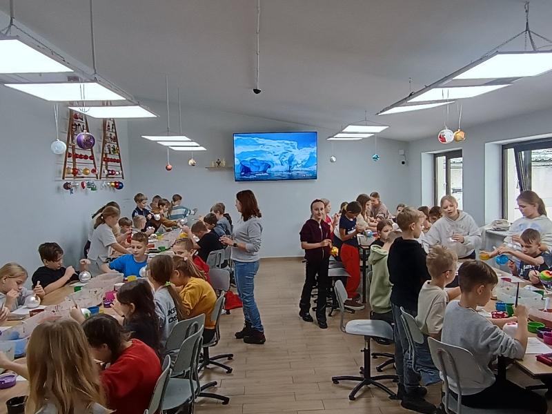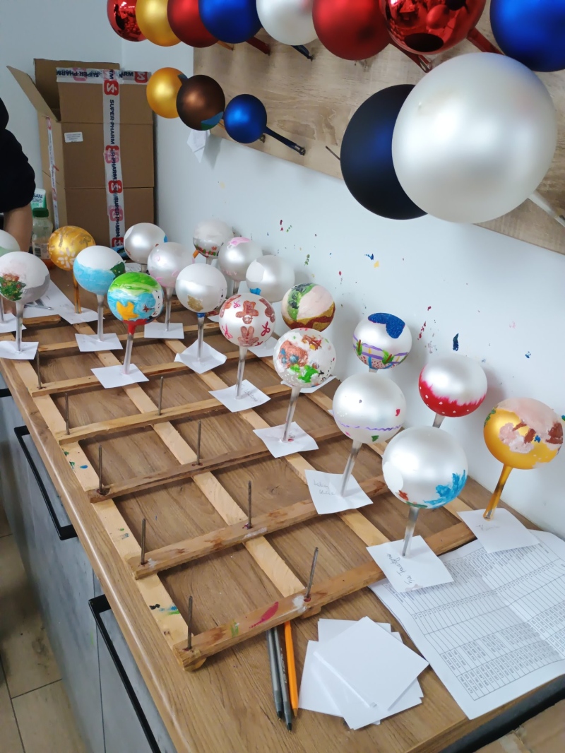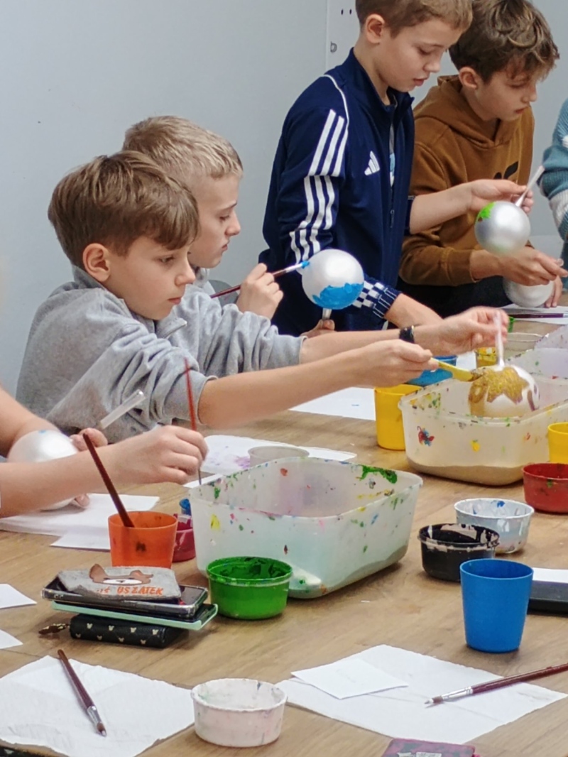 Największą atrakcją były warsztaty plastyczne, podczas których każdy samodzielnie malował bombkę według własnego pomysłu. Gotowe ozdoby stały się nie tylko piękną dekoracją domowej choinki, ale także wspaniałą pamiątką.