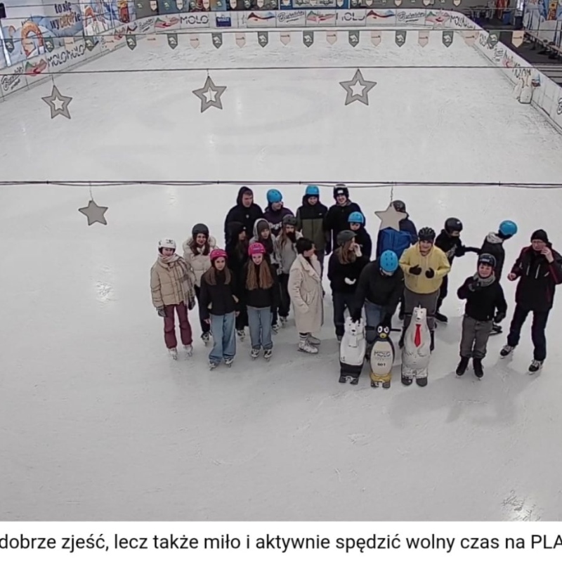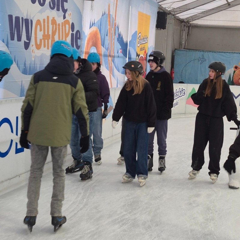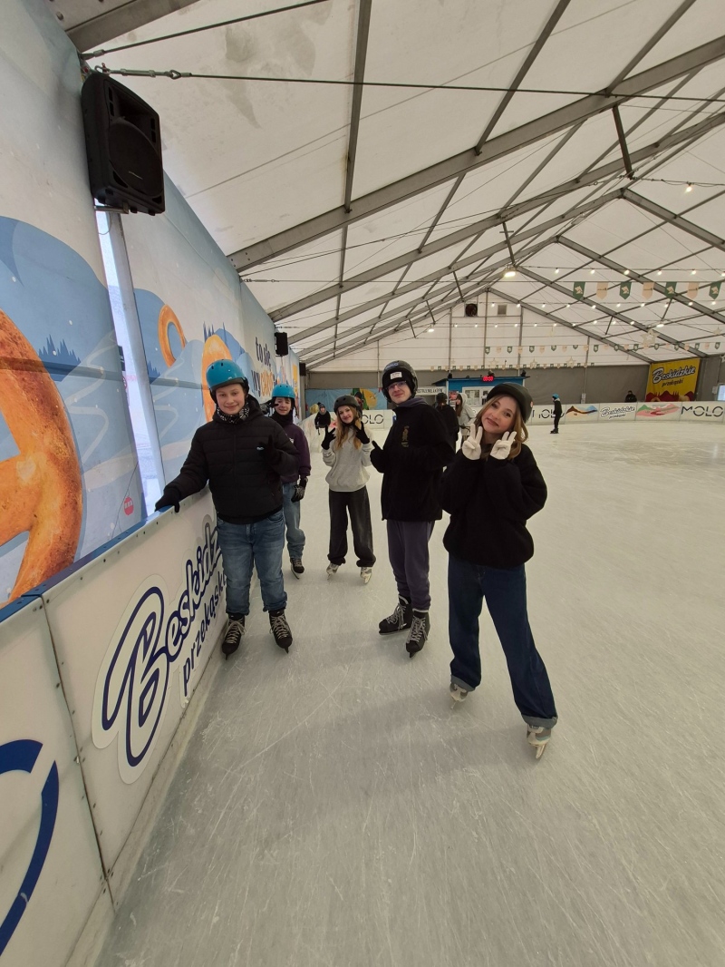 Jazda na łyżwach pozytywnie wpływa na rozwój fizyczny dzieci i młodzieży – poprawia kondycję, koordynację ruchową, równowagę oraz wzmacnia mięśnie. Regularna aktywność ruchowa sprzyja także lepszemu samopoczuciu, redukuje stres i pomaga rozładować nagromadzone napięcie. Równie ważnym aspektem wyjazdu było wspólne spędzanie czasu – uczniowie mieli okazję lepiej się poznać, uczyć współpracy, wzajemnej pomocy oraz budować pozytywne relacje w grupie. Takie wyjazdy sprzyjają integracji, rozwijają umiejętności społeczne i wzmacniają poczucie przynależności do klasy oraz szkoły, a jednocześnie pokazują, że aktywny wypoczynek może być świetną formą zabawy.