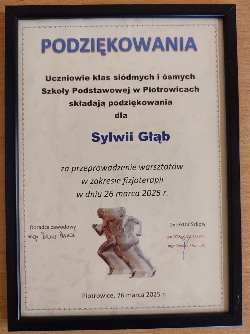 Dnia 26 marca gościliśmy w naszej szkole w ramach doradztwa zawodowego panią Sylwię Głąb, która przybliżyła młodzieży na czym polega praca fizjoterapeuty.