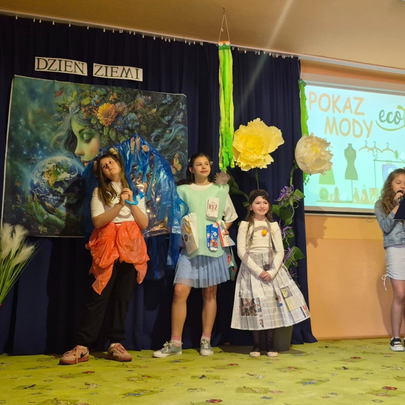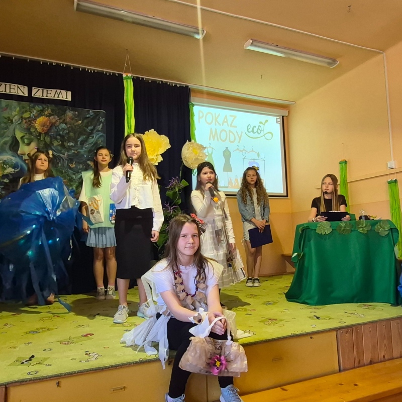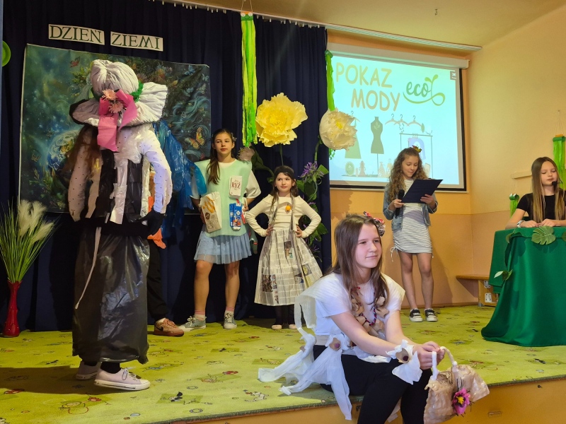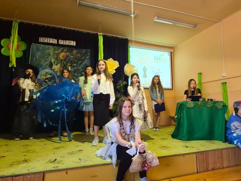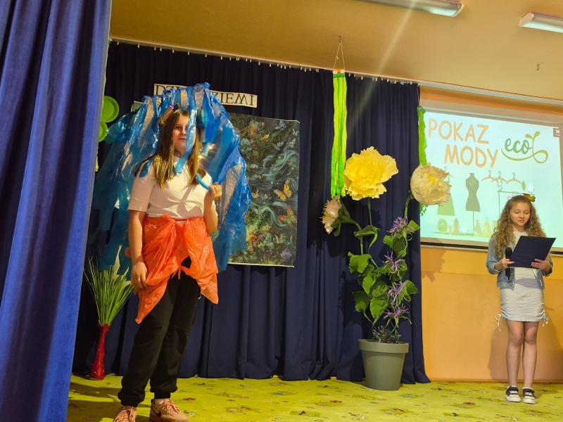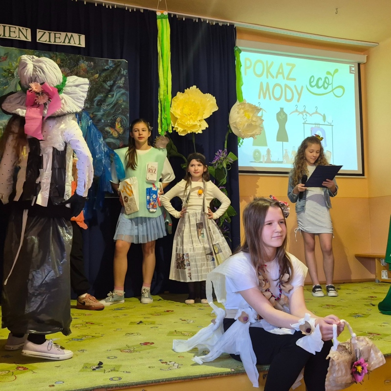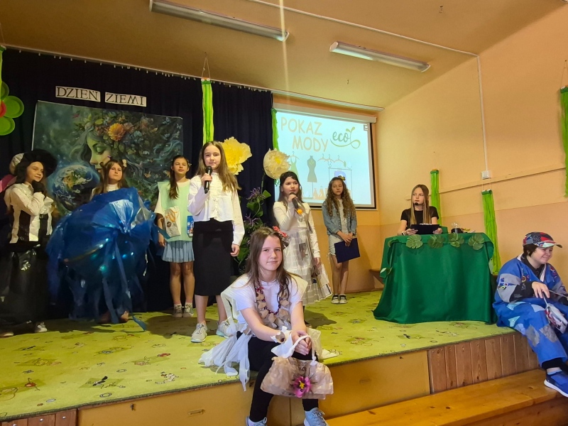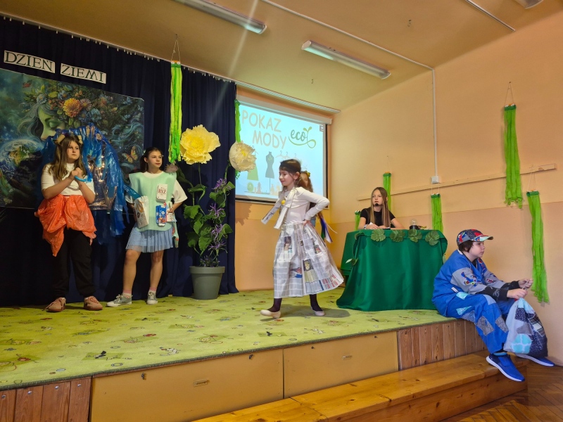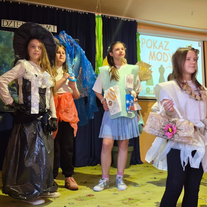 Na zakończenie odbył się pokaz mody ekologicznej. Uczniowie zaprezentowali stroje wykonane z materiałów przeznaczonych do recyklingu, takich jak papier, plastik czy folia. Kreatywność uczestników była imponująca, a publiczność nagrodziła ich gromkimi brawami.