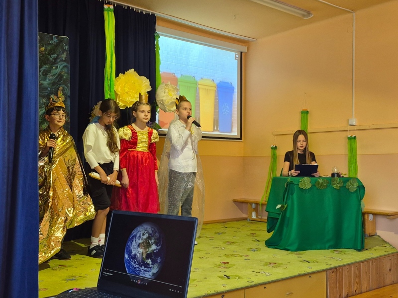 Z okazji Dnia Ziemi w naszej szkole odbyło się wyjątkowe przedstawienie przygotowane przez uczniów klas czwartych. Wydarzenie miało na celu zwrócenie uwagi na problemy związane z ochroną środowiska oraz zachęcenie wszystkich do dbania o naszą planetę.