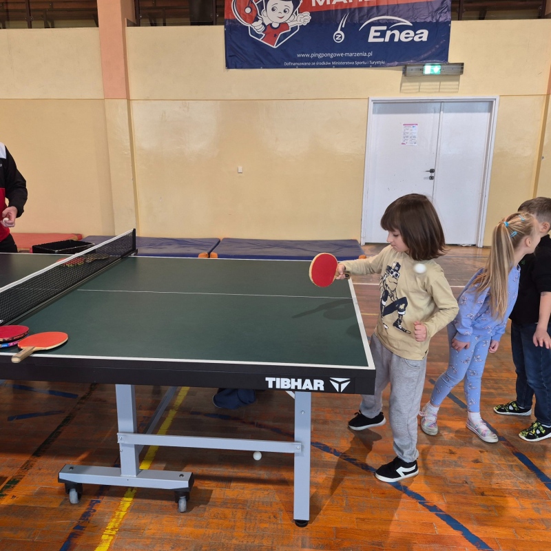 2 grudnia w naszej szkole odbyła się pokazowa lekcja tenisa stołowego, przygotowana przez wiceprezes LKS Iwony Bernaś oraz trenerów Marcina i Anię. Na wydarzenie zaproszono dzieci z zerówki z Samorządowego Przedszkola „Leśne Zacisze” w Piotrowicach.