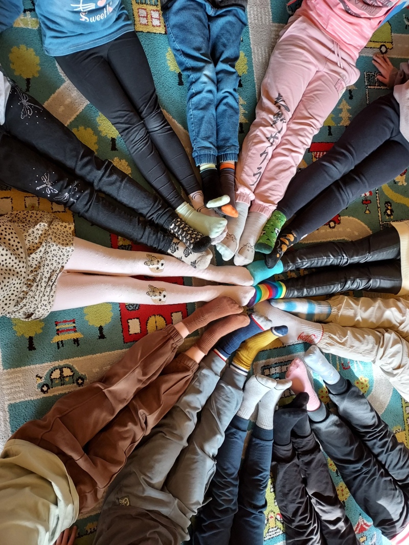 Dnia 21 marca, jak co roku, obchodziliśmy Dzień Kolorowej Skarpetki, czyli Światowy Dzień Zespołu Downa. Wybór daty nie jest przypadkowy. Nawiązuje do trzeciego dodatkowego chromosomu lub jego fragmentu w 21 parze chromosomów. Chromosom przypomina kształtem skarpetkę, dlatego stała się ona symbolem Światowego Dnia Osób z Zespołem Downa. Święto ustanowione w 2005 roku z inicjatywy Europejskiego Stowarzyszenia Zespołu Downa. Święto ma na celu zwiększenie świadomości społecznej dotyczącej tej wady genetycznej. Na znak solidarności z osobami z zespołem Downa uczniowie naszej szkoły ubrali w tym dniu kolorowe skarpetki lub nie do pary.