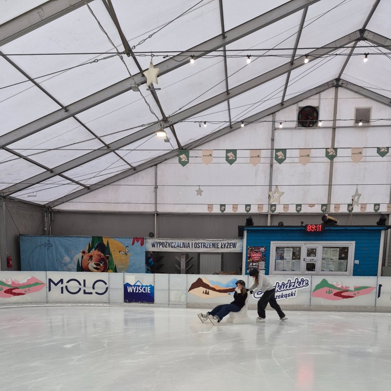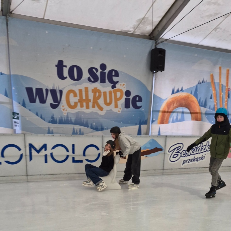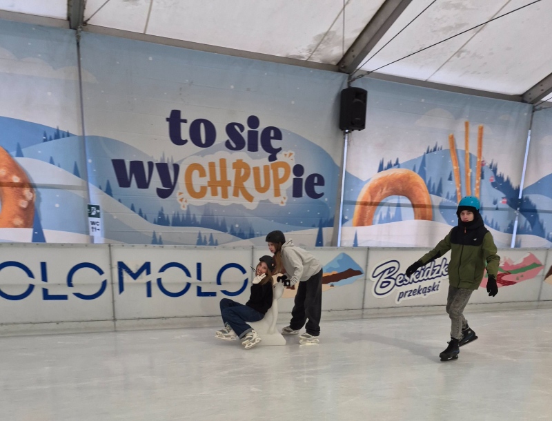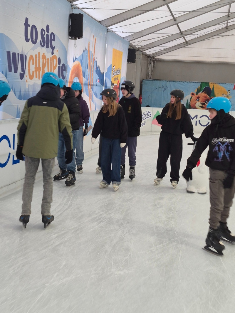 Jazda na łyżwach pozytywnie wpływa na rozwój fizyczny dzieci i młodzieży – poprawia kondycję, koordynację ruchową, równowagę oraz wzmacnia mięśnie. Regularna aktywność ruchowa sprzyja także lepszemu samopoczuciu, redukuje stres i pomaga rozładować nagromadzone napięcie. Równie ważnym aspektem wyjazdu było wspólne spędzanie czasu – uczniowie mieli okazję lepiej się poznać, uczyć współpracy, wzajemnej pomocy oraz budować pozytywne relacje w grupie. Takie wyjazdy sprzyjają integracji, rozwijają umiejętności społeczne i wzmacniają poczucie przynależności do klasy oraz szkoły, a jednocześnie pokazują, że aktywny wypoczynek może być świetną formą zabawy.